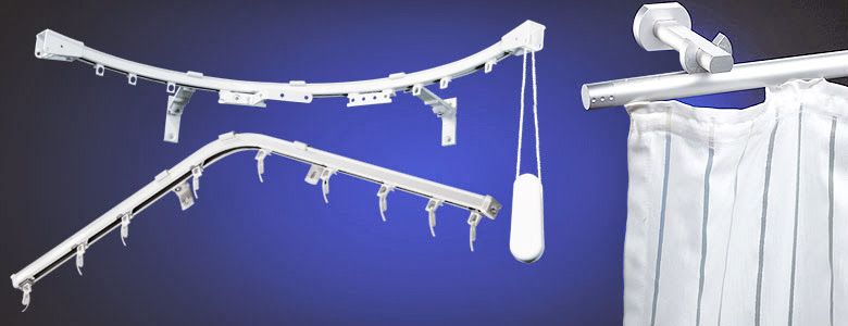 Карниз из усиленного алюминиевого профиля. Для крепления в потолок, на стену на кронштейнах. Идеально подходящий для эркерного гнутия.